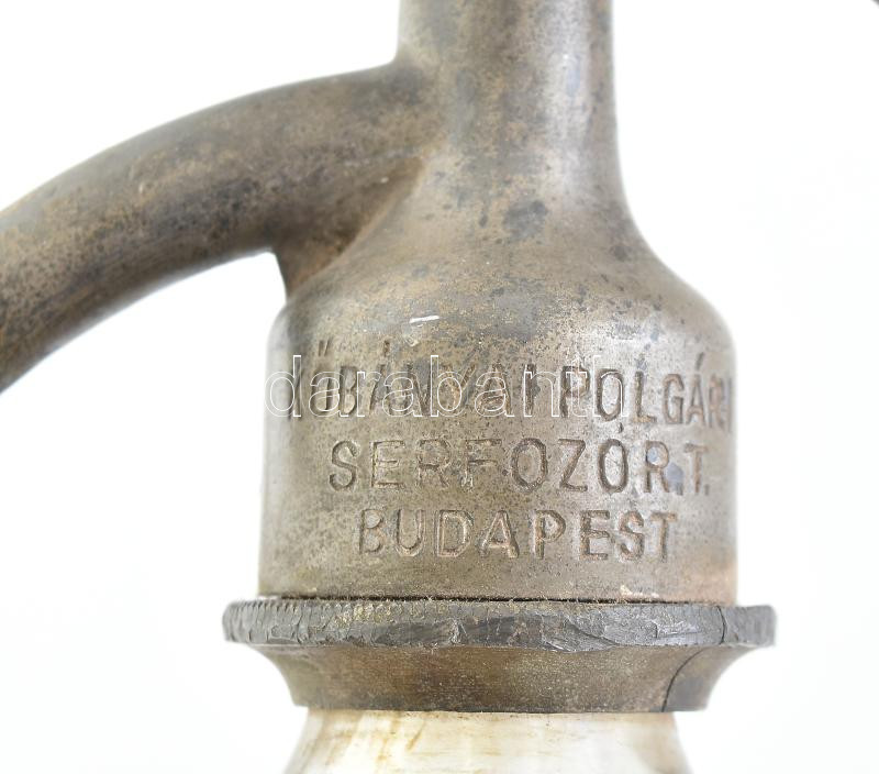 "Ungvári Miksa Szikvízgyára Budapest" feliratú szódáspalack, sérült, m: 26,5 cm