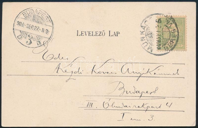 Description: 1904 Munkács, Kézdi-Kovács László (1864 - 1942) festőművész képeslapja, Munkácsról haza. "Drága Anyúkám! Szerencsésen megérkeztem. A kiállítás szép, a város élénk és nagyon ... épül. Egy kis képet már eladtam. Ölel benneteket Apikád."