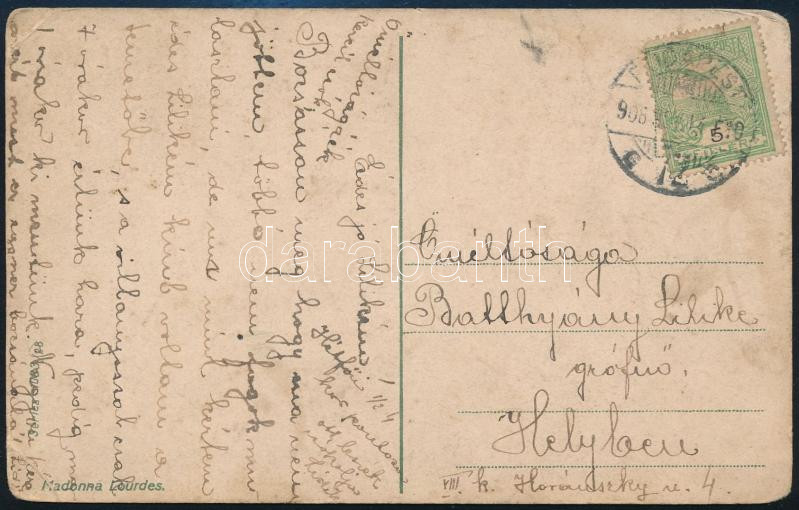 1908 Batthyány Lilike grófnőnek küldött képeslap
