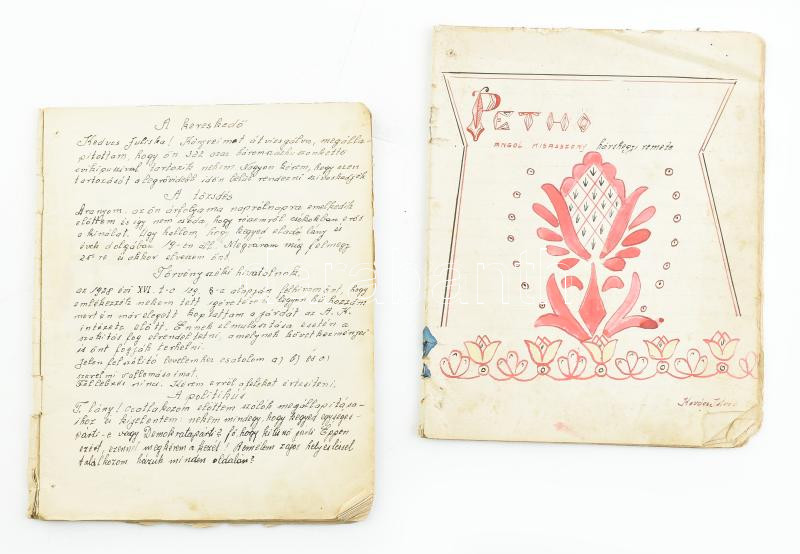 cca 1930 2 db régi füzet, benne rajzokkal (Kovács István jelzéssel), versekkel, jegyzetekkel, naplóbejegyzésekkel, stb. Kissé viseltes állapotban.