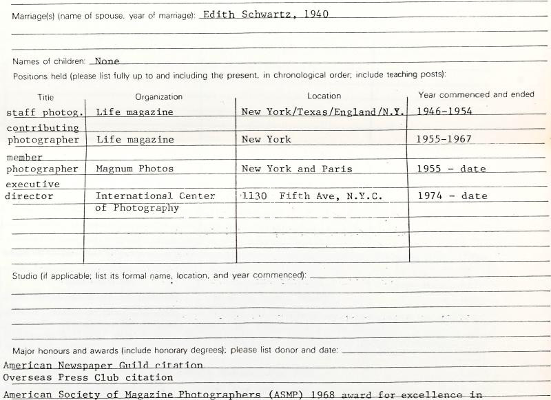 cca 1979 Dokumentáció Cornell Capa (1918-2008) fényképész művészi pályafutásáról