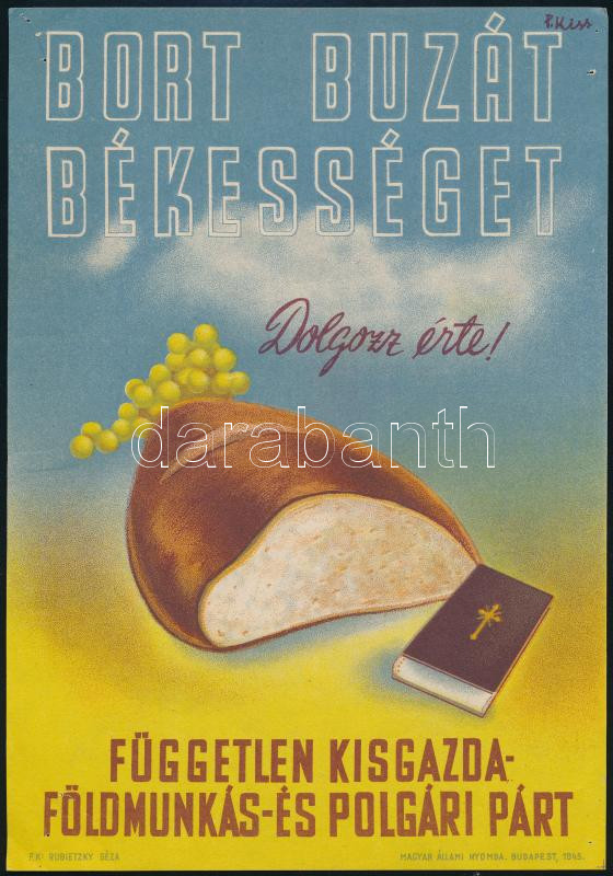 https://www.darabanth.com/en/431-Online-auction/431.0/Art-and-other-collectibles/Posters~4000003/cca-1945-Bort-buzat-bekesseget-Dolgozz-erte-Fuggetlen-Kisgazda-Foldmunkas-es-Polgari-P~II2767892