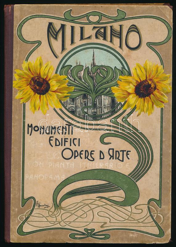 Description: cca 1910 Milano. Monumenti Edifici Opere d'Arte, leporelló, 33 képpel + 1 db 4 lapból álló panorámaképpel. Szecessziós félvászon-kötés, kissé kopott borítóval, egykorú possessori és Banner Zoltán (1932-) művészeti író saját kezű névbejegyzésével.
