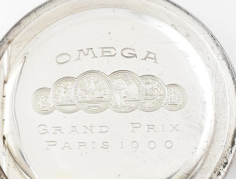 Omega ezüst (Ag) zsebóra jelzett tokkal és szerkezettel, hibátlan számlappal. Javításra szorul, de működőképes. (felhúzó nem akad meg) d: 50 mm