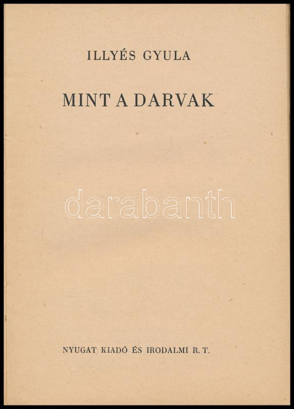 https://www.darabanth.com/en/431-Online-auction/431.0/Books/Books-Other-rarities~4000025/Illyes-Gyula-Mint-a-darvak-Bp-1942-Nyugat-Elso-kiadas-Kiadoi-kisse-kopott-kisse-szakadt-~II2768731
