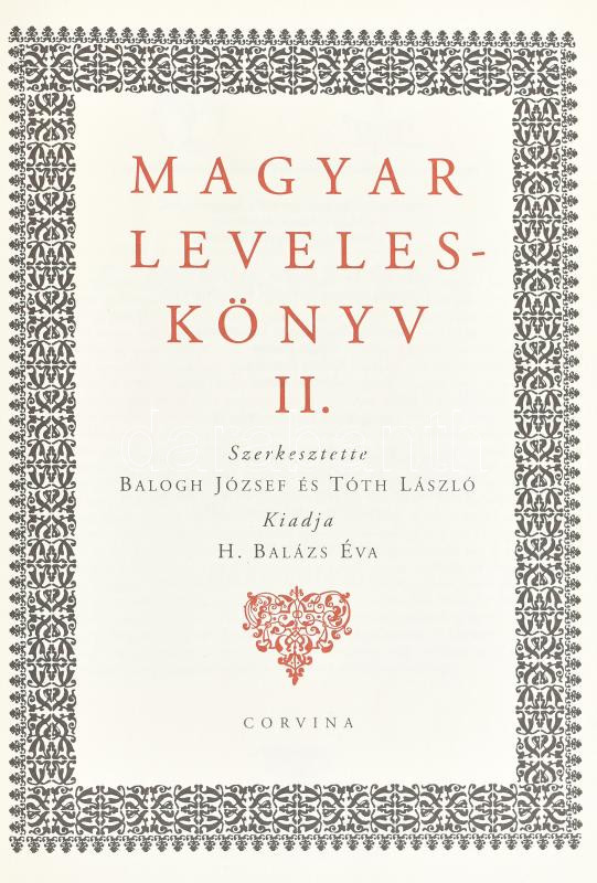 Magyar Leveleskönyv I-II. köt. Szerk.: Balogh József és Tóth László. K... https://www.darabanth.com/en/431-Online-auction/431.0/Books/Books-Other-rarities~4000025/Magyar-Leveleskonyv-I-II-kot-Szerk-Balogh-Jozsef-es-Toth-Laszlo-Kiadja-H-Balazs-Eva~II2769539