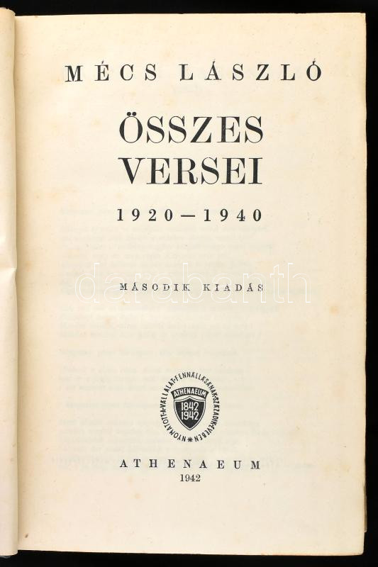 Mécs László összes versei 1920-1940. Bp., 1941, Athenaeum. Stanislav O... https://www.darabanth.com/en/431-Online-auction/431.0/Books/Books-Other-rarities~4000025/Mecs-Laszlo-osszes-versei-1920-1940-Bp-1941-Athenaeum-Stanislav-Ostoje-Chrostowski-fametsze~II2774556