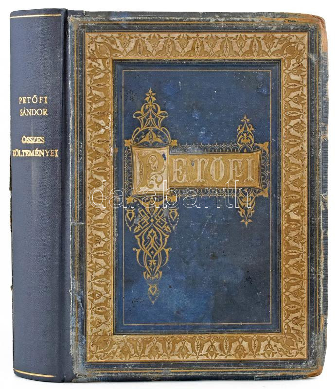 Petőfi Sándor összes költeményei. Hazai művészek rajzaival díszített képes kiadás. Bp., 1878.,. Mehner Vilmos,(Franklin-ny.), 805+9 p. Gazdag szövegközti képanyaggal illusztrált. Javított gerincű kiadói aranyozott egészvászon-kötés, kopott borítóval, javított kötéssel, benne több javított lappal (kb. 9) és 1 sérült lappal, foltos lapokkal.