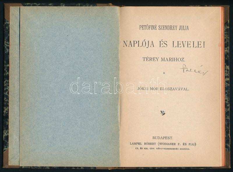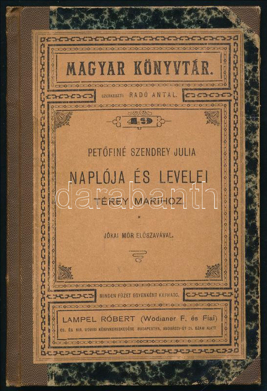 https://www.darabanth.com/en/431-Online-auction/431.0/Books/Books-Other-rarities~4000025/Petofine-Szendrey-Julia-naploja-es-levelei-Terey-Marihoz-Jokai-Mor-eloszavaval-Bp-1898-L~II2766466