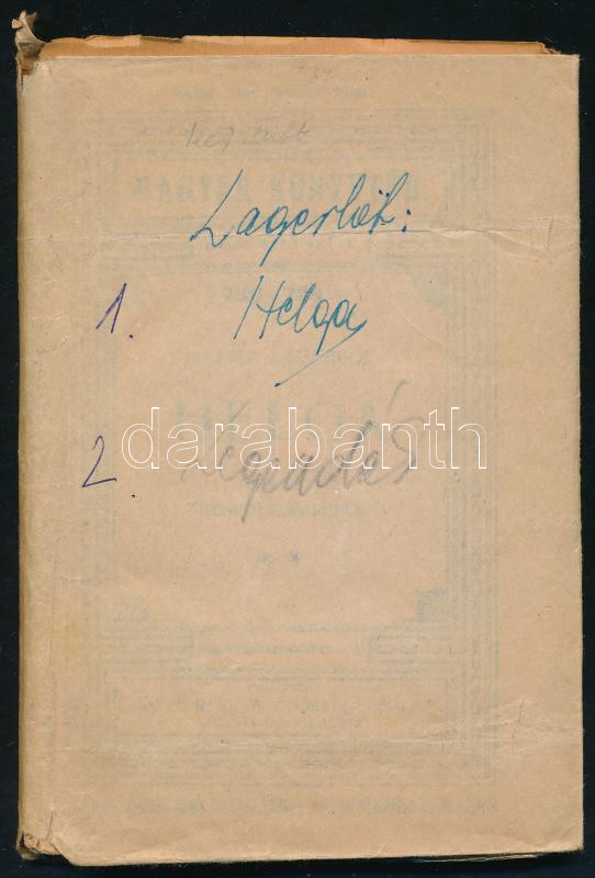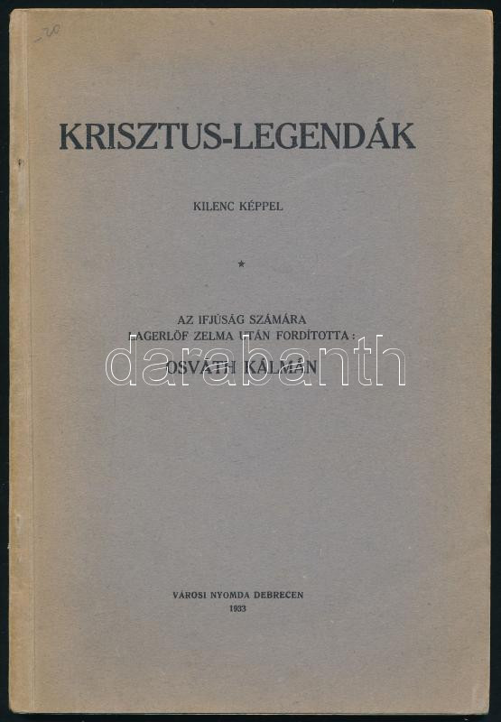 Selma Lagerlöf: Krisztus-legendák. Kilenc képpel. Ford.: Osváth Kálmán. Debrecen, 1933, Városi-ny. Kiadói papÃrkötés. + Selma Lagerlöf: Helga. Ford.: Benedek Marcell.; Legendák. Magyar Könyvtár 738-739., 577. Bp.,én.,Lampel R. (Wodianer F. és Fiai) Rt. Kiadói papÃrkötések, szakadt, szétesÅ‘ állapotban, az egyik foltos, papÃrvédÅ‘borÃtóban.