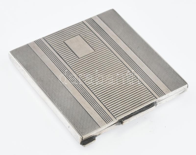 Ezüst (Ag) pudrié, cca 1930, jelzett, 8×8 cm, bruttó: 78 g