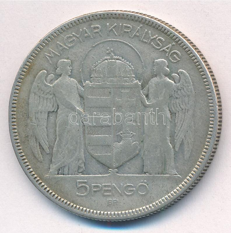 https://www.darabanth.com/en/431-Online-auction/431.0/Numismatics/Hungarian-coins-and-coins-with-Hungarian-mint-marks~1500008/1930-5P-Ag-Horthy-jobbra-T3-patina-Adamo-P8~II2769870