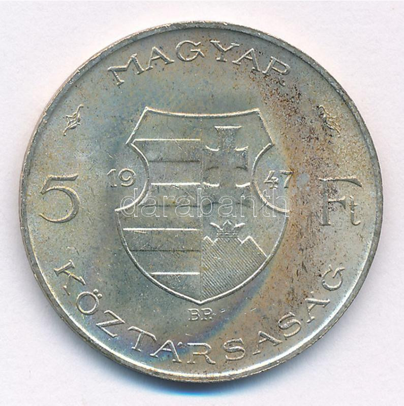 https://www.darabanth.com/en/431-Online-auction/431.0/Numismatics/Hungarian-coins-and-coins-with-Hungarian-mint-marks~1500008/1947-5Ft-Ag-Kossuth-T1-patina-Adamo-F81~II2747486