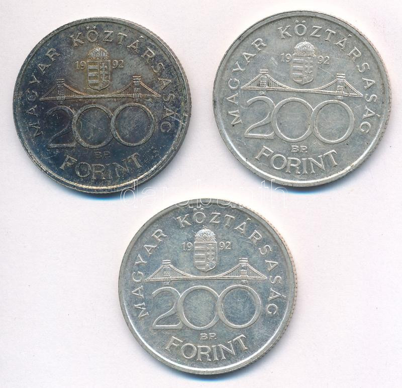 1992. 200Ft Ag "MNB" (3x) T:1-,2 patina Adamo F13