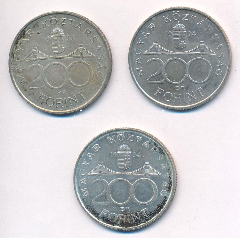 1993. 200Ft Ag "MNB" (3x) T:2 patina Adamo F13