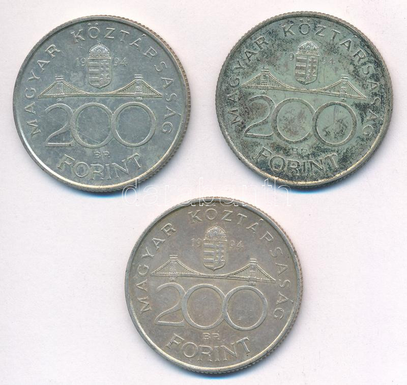 1993. 200Ft Ag "MNB" (3x) T:2 patina Adamo F13