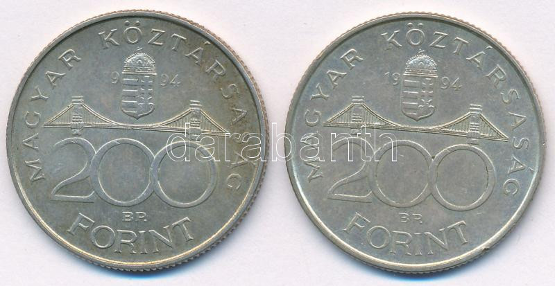 1994. 200Ft Ag "Deák" (2x) T:1-,2 patina