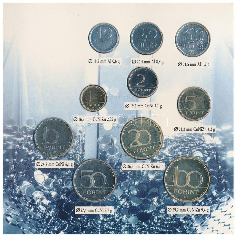 1996. 10f-100Ft 10klf db "50 éves a forint" forgalmi sor dís...