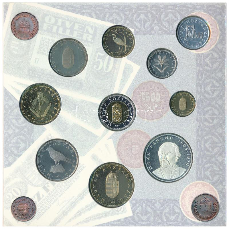 1997. 50f-100Ft (9xklf) forgalmi sor, + 200Ft Ag "Deák". A b... https://www.darabanth.com/en/431-Online-auction/431.0/Numismatics/Hungarian-coins-and-coins-with-Hungarian-mint-marks~1500008/1997-50f-100Ft-9xklf-forgalmi-sor-plus-200Ft-Ag-Deak-A-belso-tokon-a-ragasztas-reszben-eleng~II2769075