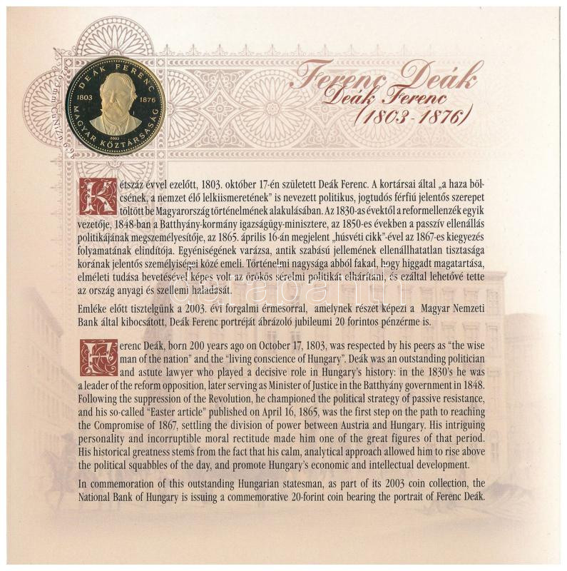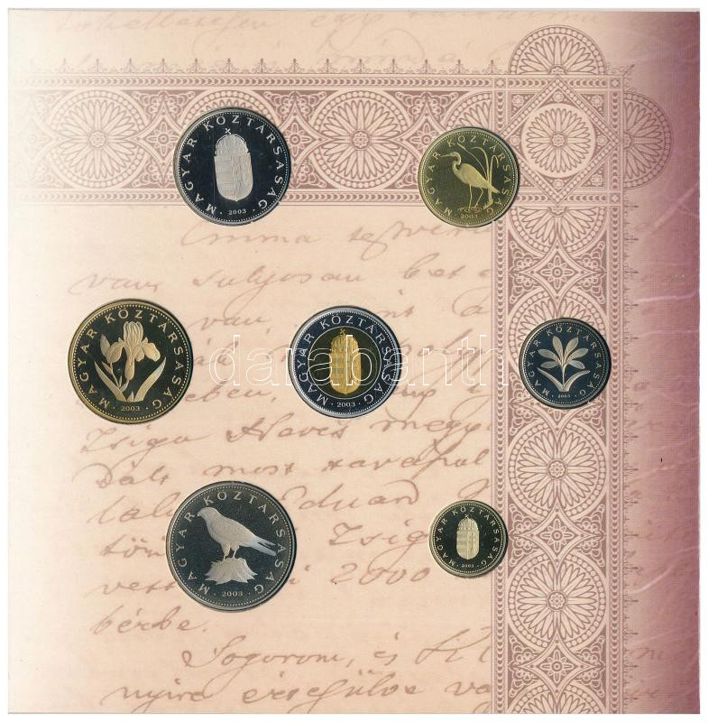 https://www.darabanth.com/en/431-Online-auction/431.0/Numismatics/Hungarian-coins-and-coins-with-Hungarian-mint-marks~1500008/2003-1Ft-100Ft-7xklf-forgalmi-sor-szettben-plus-20Ft-Deak-Ferenc-forgalmi-emlekerme-TPP-kis-pa~II2769084