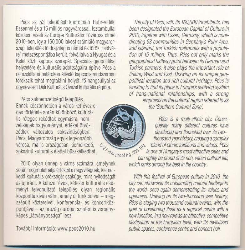 2010. 5Ft-200Ft (6xklf) forgalmi sor szettben + "Pécs 2010 - Európa Kulturális Fővárosa" Ag emlékérem, belső borító ragasztása minimálisan elengedett (10g/0.999/27mm) T:BU,PP patina Adamo FO44.4
