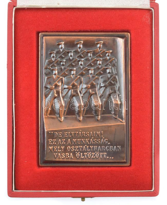 Description: Kiss Nagy András (1930-1997) 1977. "De elvtársaim! Ez az a munkásság, mely osztályharcban vasba öltözött... / Emlékül a Munkásőrség alapító tagjának a Munkásőrség országos parancsnokától 1977. II." bronz emlékplakett eredeti tokban (104,5x72mm) T:1