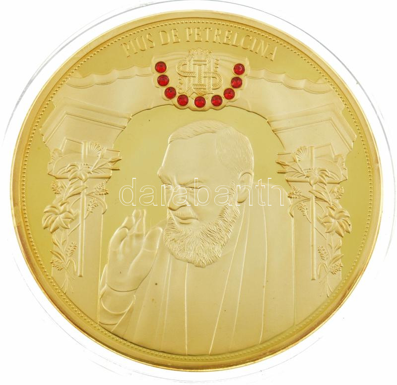 Vatikán DN "Pius de Petrelcina / Nostra est deus spes" arany... https://www.darabanth.com/en/431-Online-auction/431.0/Numismatics/Modern-restrikes-fantasy-coins~1500013/Vatikan-DN-Pius-de-Petrelcina-Nostra-est-deus-spes-aranyozott-Cu-emlekerem-Swarowski-kristal~II2770169