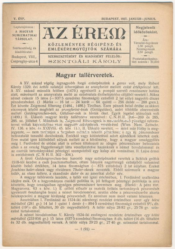 https://www.darabanth.com/en/431-Online-auction/431.0/Numismatics/Numismatics-Literature~1500002/Az-Erem-cimu-folyoirat-1927-evi-szama-V-evfolyam-januar-junius~II2768172