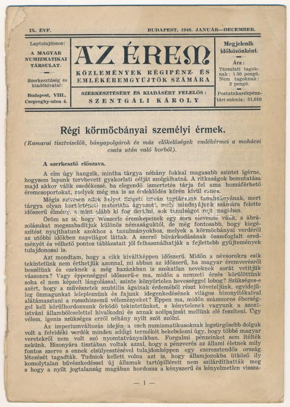 https://www.darabanth.com/en/431-Online-auction/431.0/Numismatics/Numismatics-Literature~1500002/Az-Erem-cimu-folyoirat-1940-evi-szama-IX-evfolyam-januar-december-gerincen-szakadas~II2768224