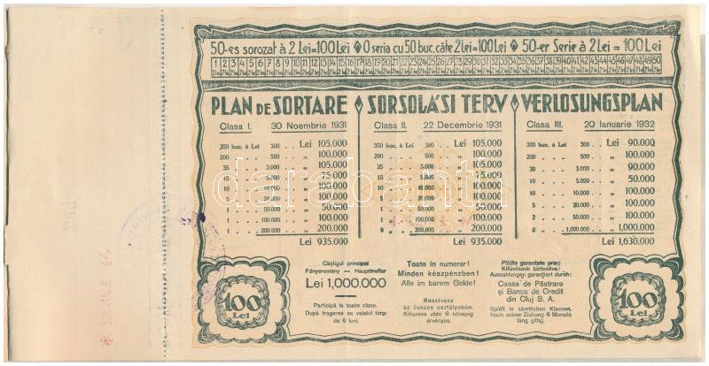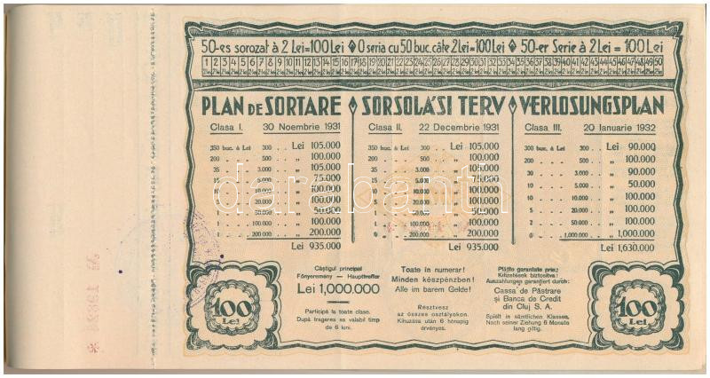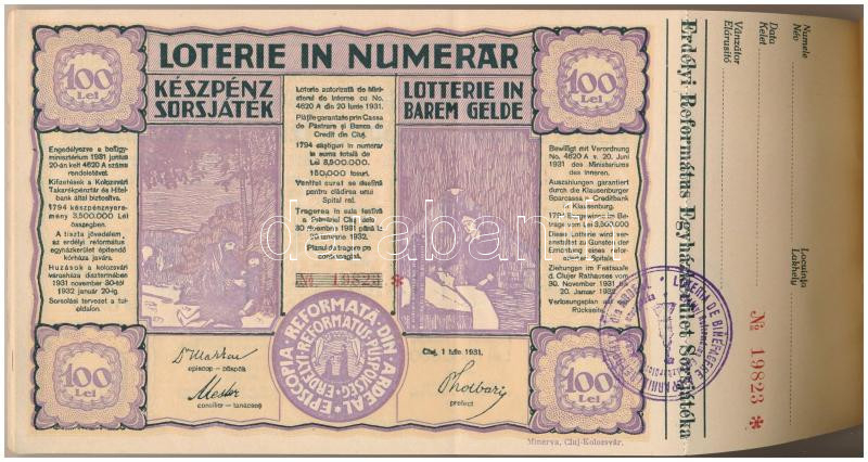 Románia 1931. "Erdélyi Református Egyházközség Sorsjátéka" s... https://www.darabanth.com/en/431-Online-auction/431.0/Numismatics/Shares-and-Tickets~1500005/Romania-1931-Erdelyi-Reformatus-Egyhazkozseg-Sorsjateka-sorsjegy-10x-sorszamkovetok-~II2772049