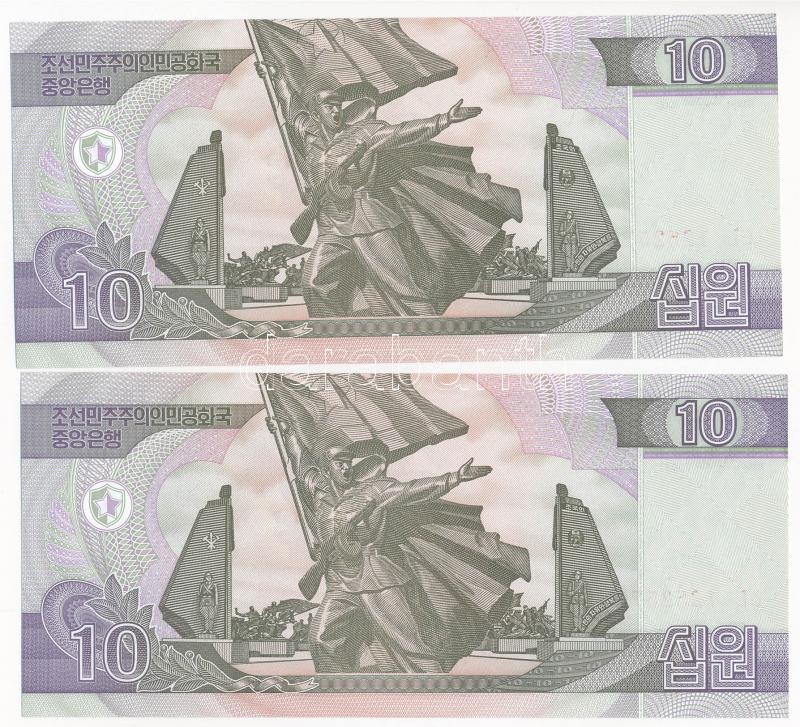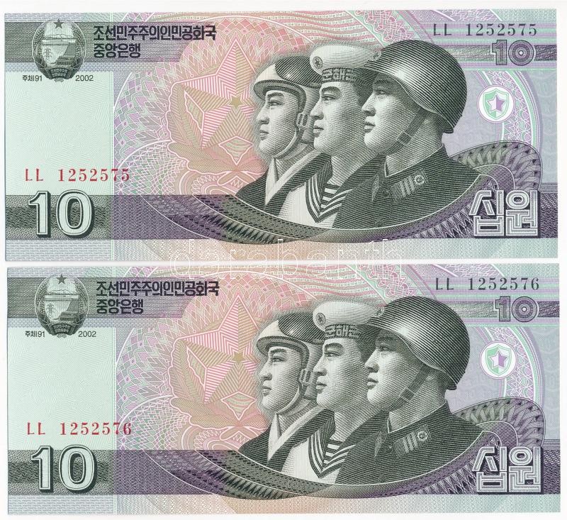 Észak-Korea 2002. 10W (2x) sorszámkövetők T:I North Korea 2002. 10 Won (2x) consecutive serials C:UNC Krause P#59