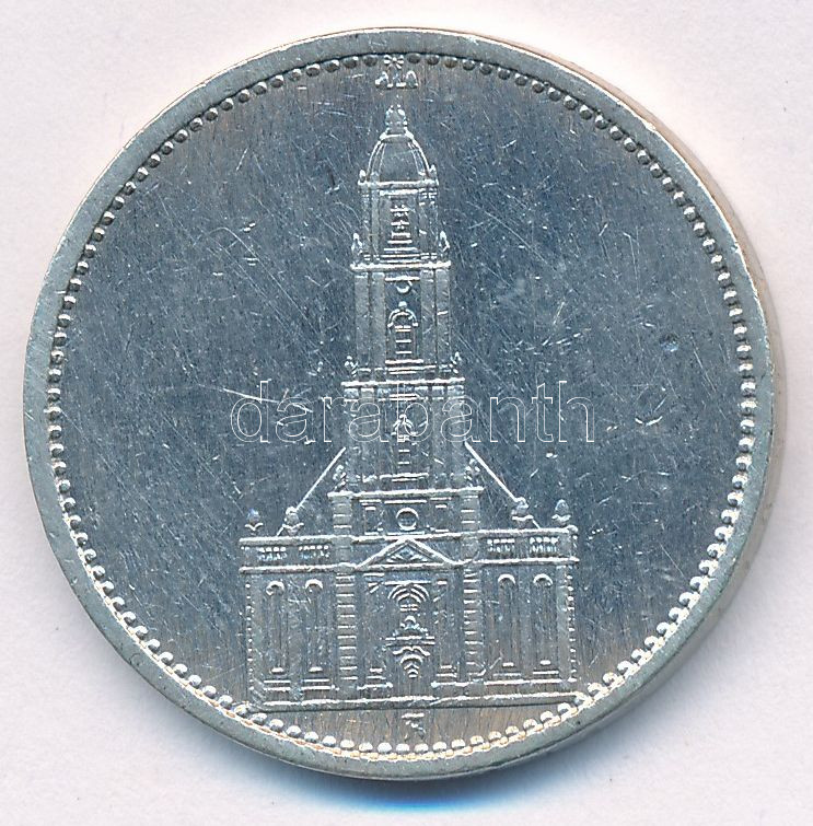 Német Harmadik Birodalom 1935A 5M Ag "Náci hatalom első évforduló... https://www.darabanth.com/en/431-Online-auction/431.0/Numismatics/Worldwide-silver-and-metal-coins~1500016/Nemet-Harmadik-Birodalom-1935A-5M-Ag-Naci-hatalom-elso-evforduloja-Potsdami-Garrison-templom~II2772938