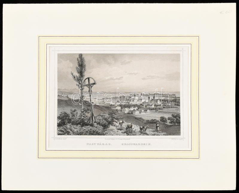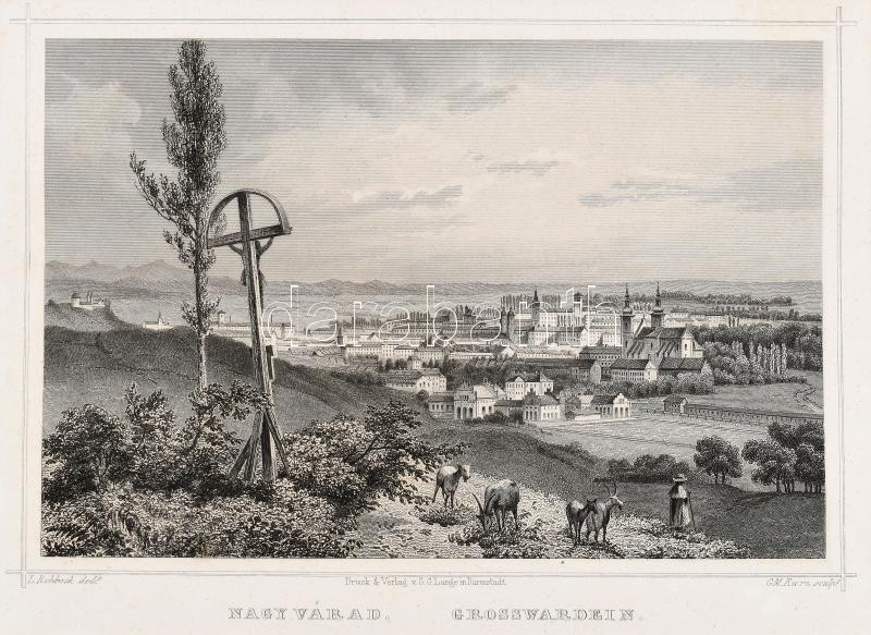 Description: 1859 Nagyvárad - Grosswardein. Acél metszet, Ludwig Rohbock (1820-1883) rajza alapján metszette Georg Michael Kurz (1815-1883). Pest, Lauffer és Stolp, 16,5×11 cm, paszpartuban
