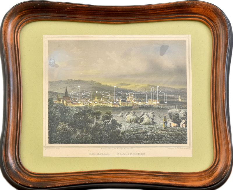 Ludwig Rohbock (1820-1883) - J. M. Kolb: Kolozsvár látképe. Színezett acélmetszet, papír, jelzett a metszeten, üvegezett keretben, 11,5x16 cm./ Ludwig Rohbock (1820-1883) - J. M. Kolb: Panorama of Kolozsvár (Cluj-Napoca/Klausenburg), coloured steel engraving on paper, framed, 11,5x16 cm.