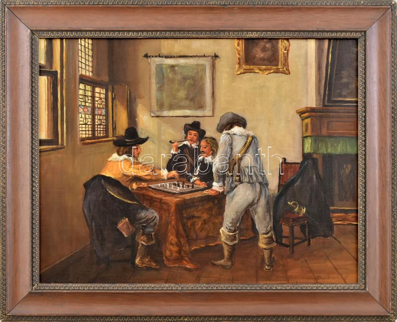 https://www.darabanth.com/en/431-Online-auction/431.0/Paintings-and-graphics/Paintings-and-graphics-quot-signedquot-or-quot-without-signquot-~5000003/H-Bully-jelzessel-Sakkozok-Olaj-farost-Dekorativ-fakeretben-33x41-5-cm~II2768099