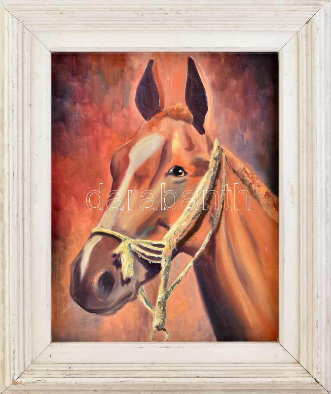 Jelzés nélkül: Lóportré. Olaj, vászon. Dekoratív fakeretben. 50x40 cm.