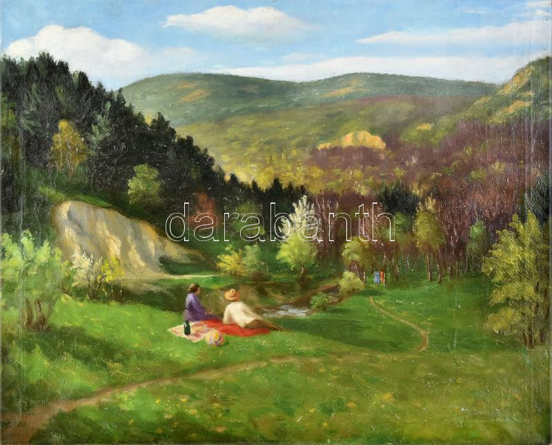 https://www.darabanth.com/en/431-Online-auction/431.0/Paintings-and-graphics/Paintings-and-graphics-quot-signedquot-or-quot-without-signquot-~5000003/Jelzes-nelkul-Piknik-a-szabadban-Olaj-vaszon-Javitott-54x67-cm~II2768601