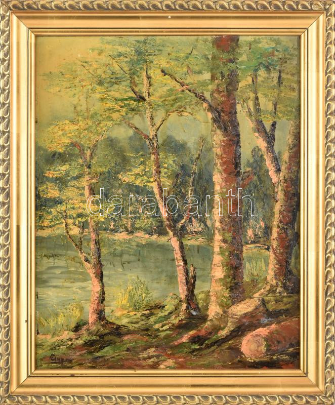 Olvahatatlan (Czinege?) jelzéssel: Vízparti fák. Olaj, farost. Dekorat...