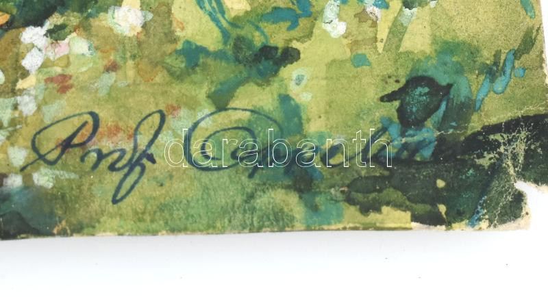 Oppel Imre (1883-1968): Bélapatak a Lomnitzi csúcsnál (Tátra). Akvarell, papír, jelzett, hátoldalán autográf felirattal, lapszéli apró sérülésekkel, 41,5x31 cm / Imre Oppel (1883-1968): Béla creek at Lomnický štít (Tatry, Tatra). Watercolour on paper, signed, with autograph description on the reverse, with small damages on the edges, 41,5x31 cm
