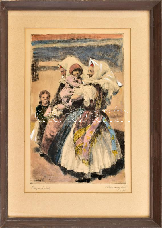 Udvary Pál (1900-1987): Kapuváriak. Színezett rézkarc, papír, jelzett,...