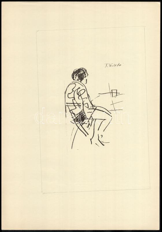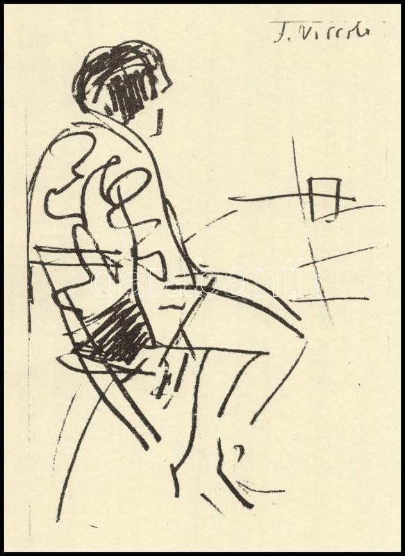 Vaszary János (1867-1939): Ülő alak. Ofszet, papír, jelzés nélkül. 42x...