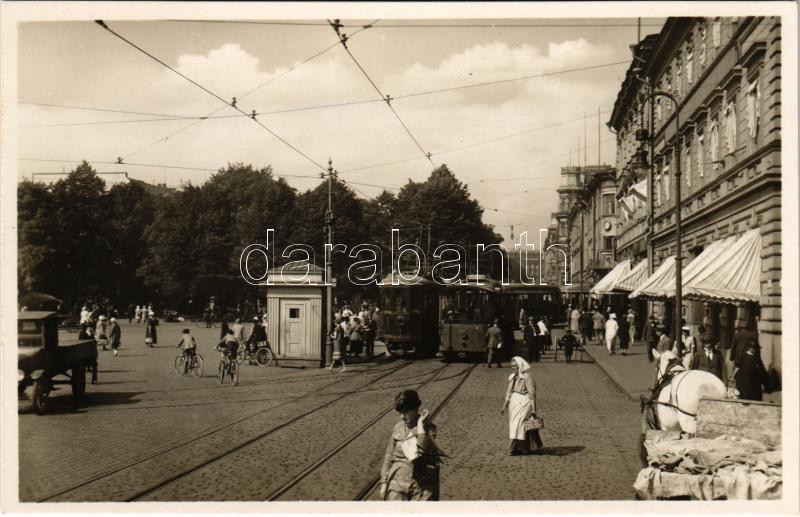 Helsinki, Helsingfors; Esplanadinkatu / Esplanadgatan / street view, tram