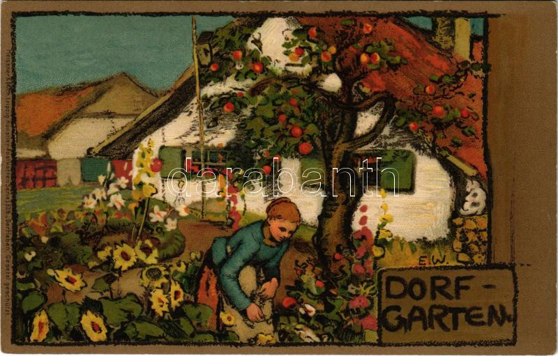 Dorfgarten. Meissner & Buch Künstler-Postkarten Serie 1329. "Dorfleben" litho s: E. W.