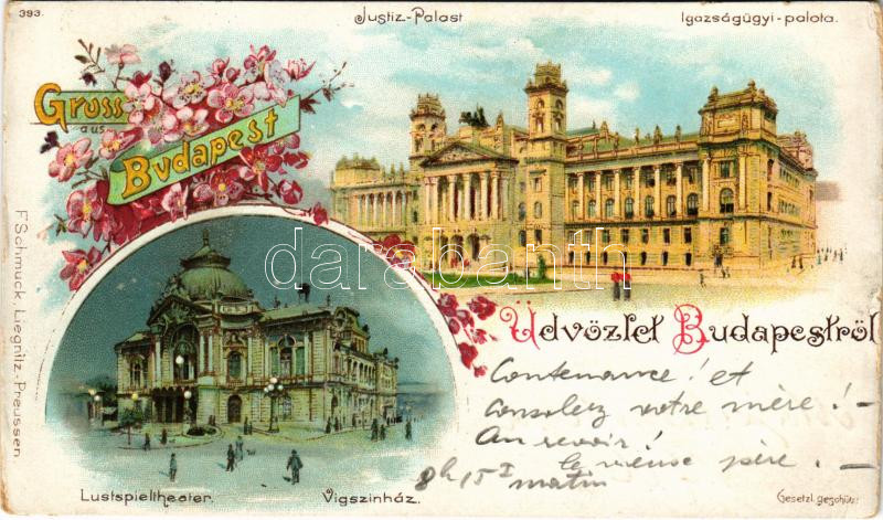 1898 (Vorläufer) Budapest, Igazságügyi Palota, Vígszínház. F. Schmuck ...