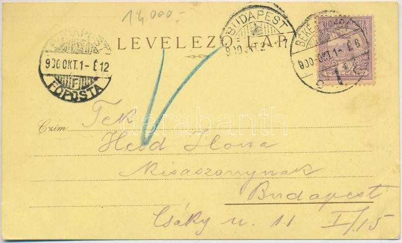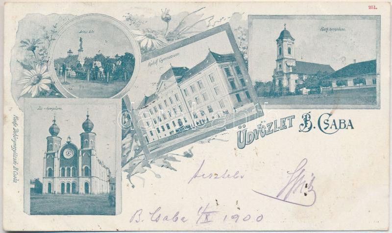 1900 Békéscsaba, Artézi kút, Izraelita templom, zsinagóga, Rudolf gimnázium, Római katolikus templom. Art Nouveau, floral