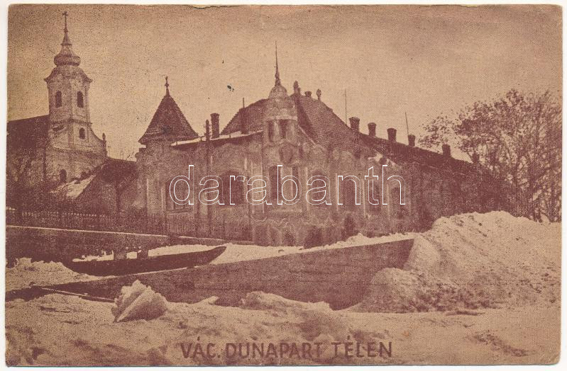 1951 Vác, Duna-part télen. Szalay Dezső kiadása (szakadás / tear)