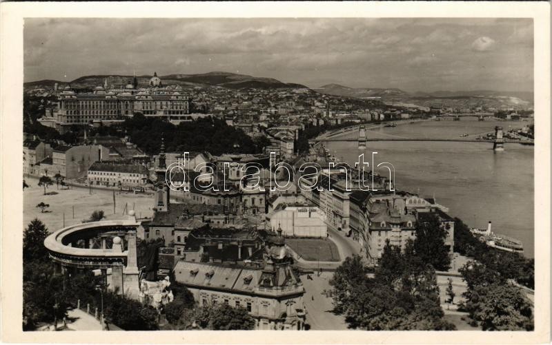 Budapest I. Kilátás a Gellért hegyről, lebontott Tabán (kivéve a Döbre...