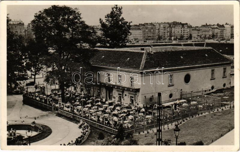 Budapest I. Tabán, Rudas gyógyfürdő, szálló és étterem, terasz vendégekkel és pincérekkel. Döbrentei tér 9. (EK)