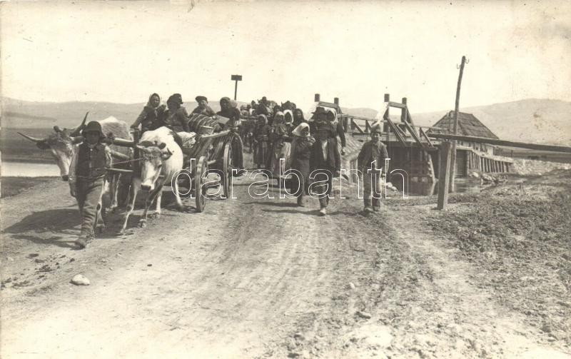 A front elől értékeikkel ökrös kocsikon menekülő emberek / WWI people ...
