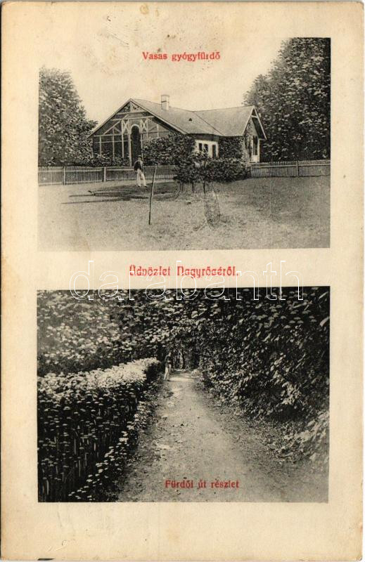 1910 Nagyrőce, Nagy-Rőcze, Gross-Rauschenbach, Velká Revúca; Vasas gyógyfürdő, Fürdői út. Lévai Izsó kiadása / spa, bath, road (fl)